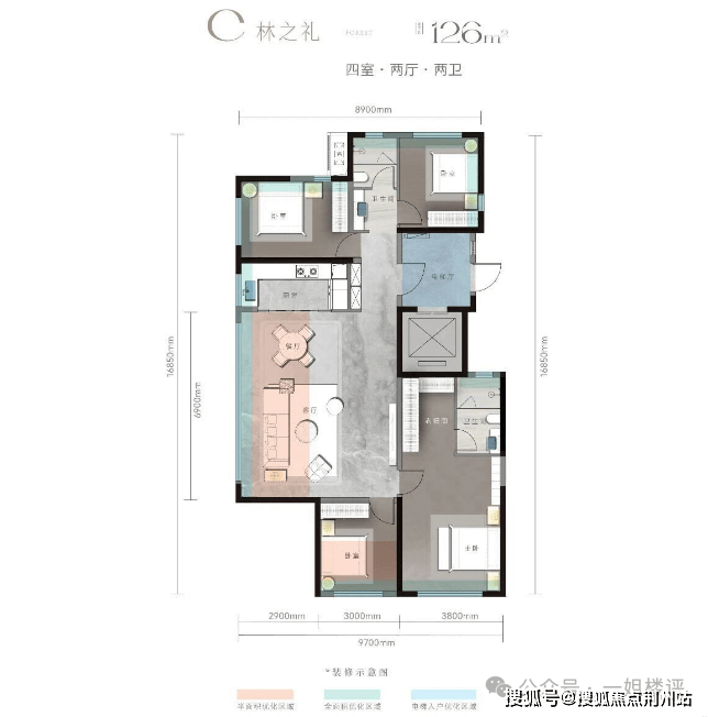 建面约126平四房两厅两卫:该户型是城投红树林全新推出的四房。