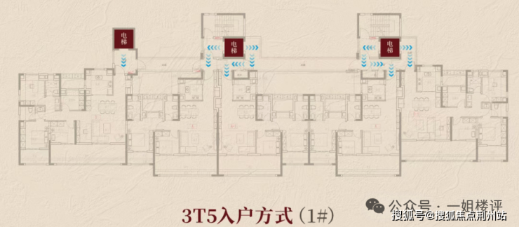 产品方面,每个户型都能实现电梯入户。尤其是3号楼,三梯五户的结构,西边的边户独立电梯入户。中间和东侧两个电梯各管2户,通过双开门电梯形成不同的归家动线,实现不同户型独立入户的舒适体验。