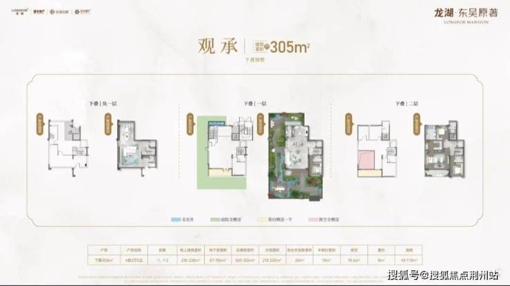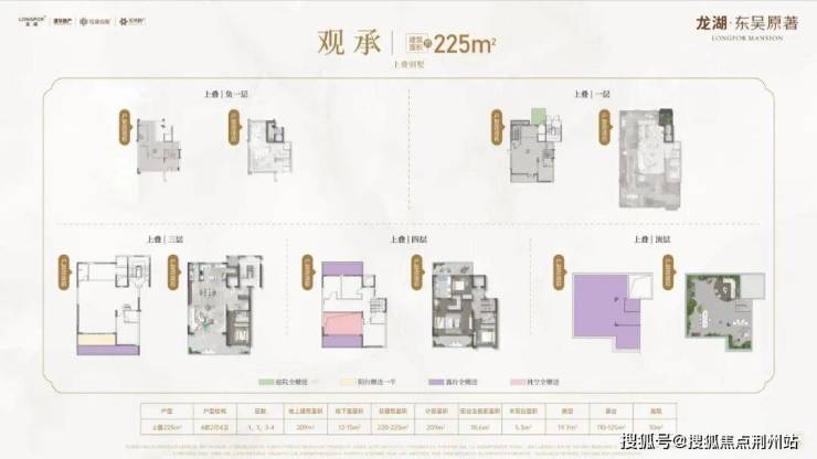 建面约220-225平上叠、305-325㎡下叠别墅,同样是小区墅居范本。