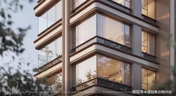 保利·江上印建筑外立面采用底座石材,东南西三面第一眼界面全铝板和玻璃幕墙,顶部鎏金塔冠点缀,实现 “四面平权”,在区域内实现了最高级的内透美学。