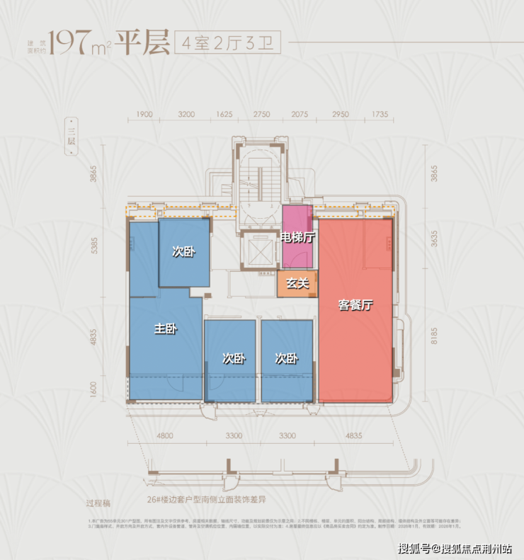 本次建发海宸推出的34#的上叠,以建面约235㎡的空间尺度,实现终极改善之选。北向首层私享建面约25㎡的入户花园,结合独门独户设计及室内私家电梯,从归家第一步即彰显身份感与私密性。室内布局同样出色,四间卧室均朝南,实现全明采光,主卧打造为豪华套房,不仅配置完备,更外接南向超大露台,于此观星、品茗或小憩,私享一方宁静天空。
