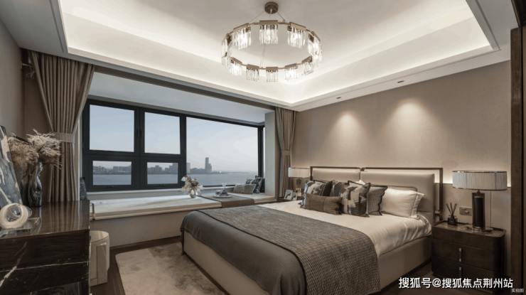 值得一提的是,客厅连接着观景阳台,在家就即可观景。站在未来就能远眺吴中太湖新城的夜景,足够让人心旷神怡。