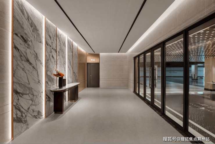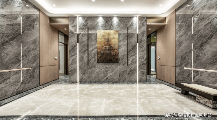 地下两层和地上均采用精装大堂设计,地下入户大堂高达惊人的4.15米,以高档岩板作为背景,增强整个墙面质感。