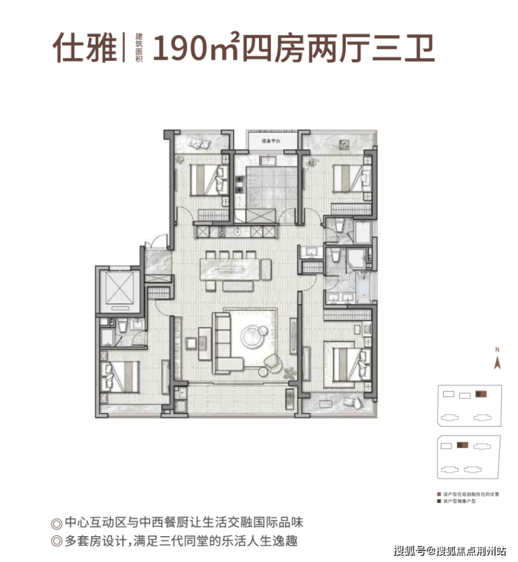 以建面约190㎡四房两厅三卫的户型为例。