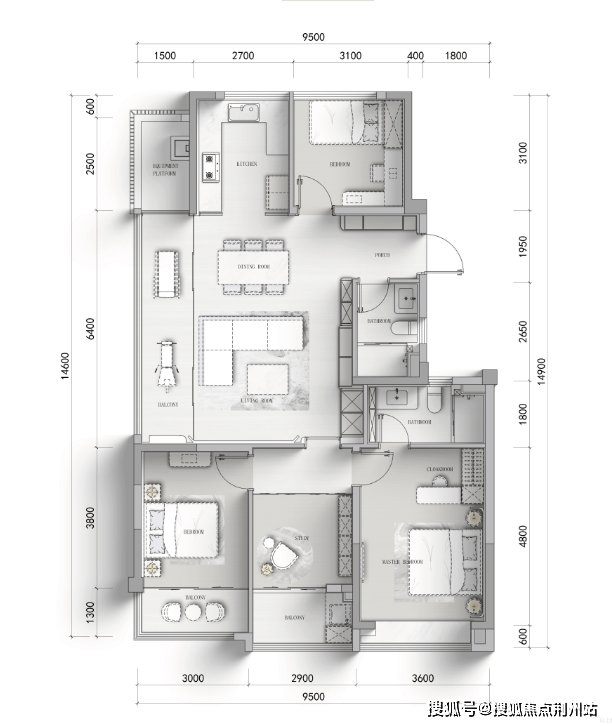 而且,西源赋建筑面积约139方是边厅户型,采光佳,布局动静分离。