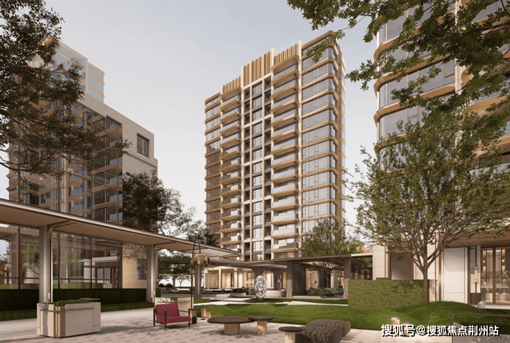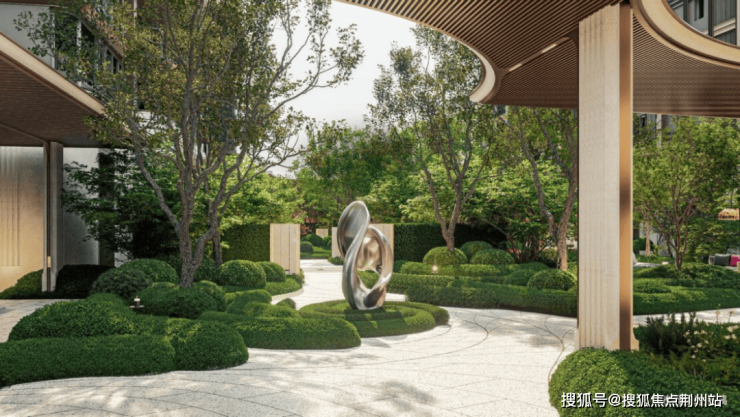 下沉庭院绿意与水系交织,泳池、健身、瑜伽……多种会所功能环绕。地面风雨连廊串联到不同单元入口,即便是到了门口,也有秘境花园静候归家。