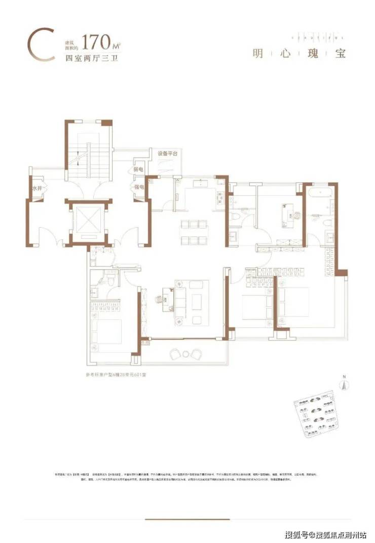除了建面约170㎡四房,项目还有少量建面约107、128㎡房源在售。