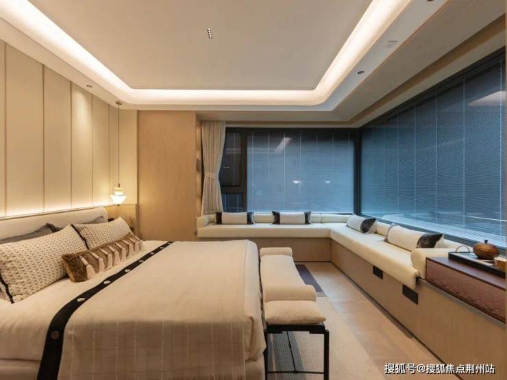 从客厅的悬浮吊顶无主灯设计,到主卧的皮质背景墙与拼花地板,每一处细节,都凝聚着匠心独运。