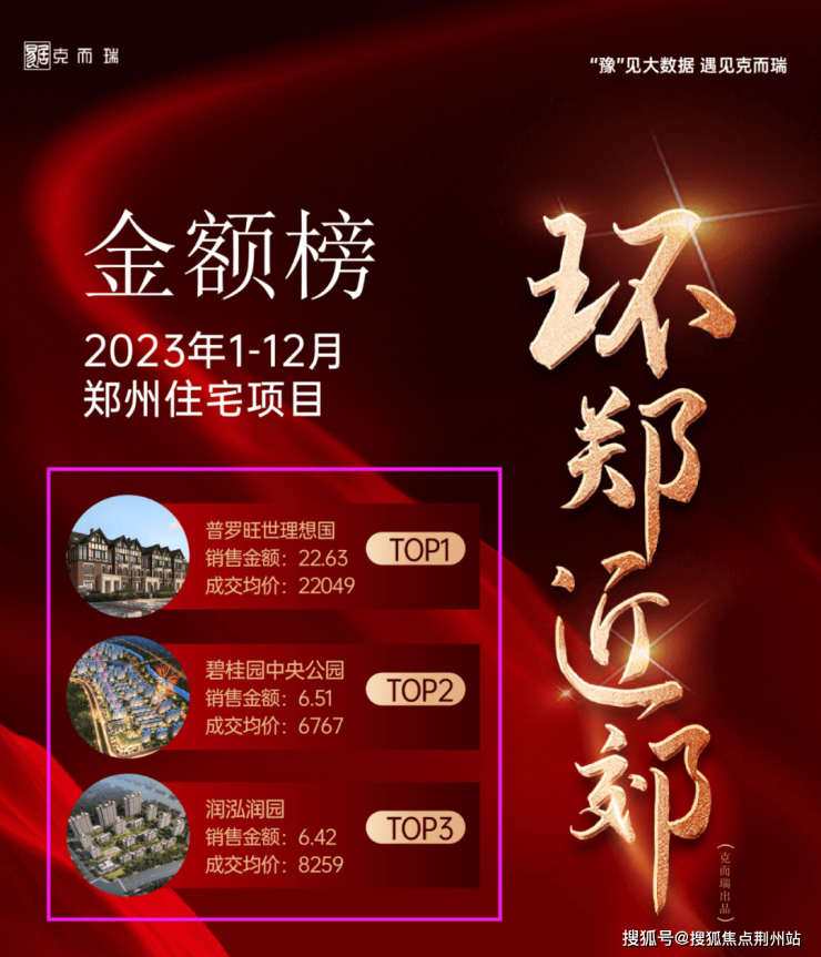 我们看下知名市场研究机构克而瑞发布的《2023年1-12月郑州住宅项目金额榜》之环郑近郊榜单,前三甲均为绿博盘。