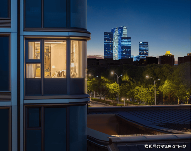 社区主入口“凤起冕旒”,以约85米长的门廊构建出强烈的归家仪式感,材质上融合金属、石材与手工景泰蓝细节,内檐叠瓦与嵌入式光带的设计,使建筑能随自然光景呈现不同氛围。