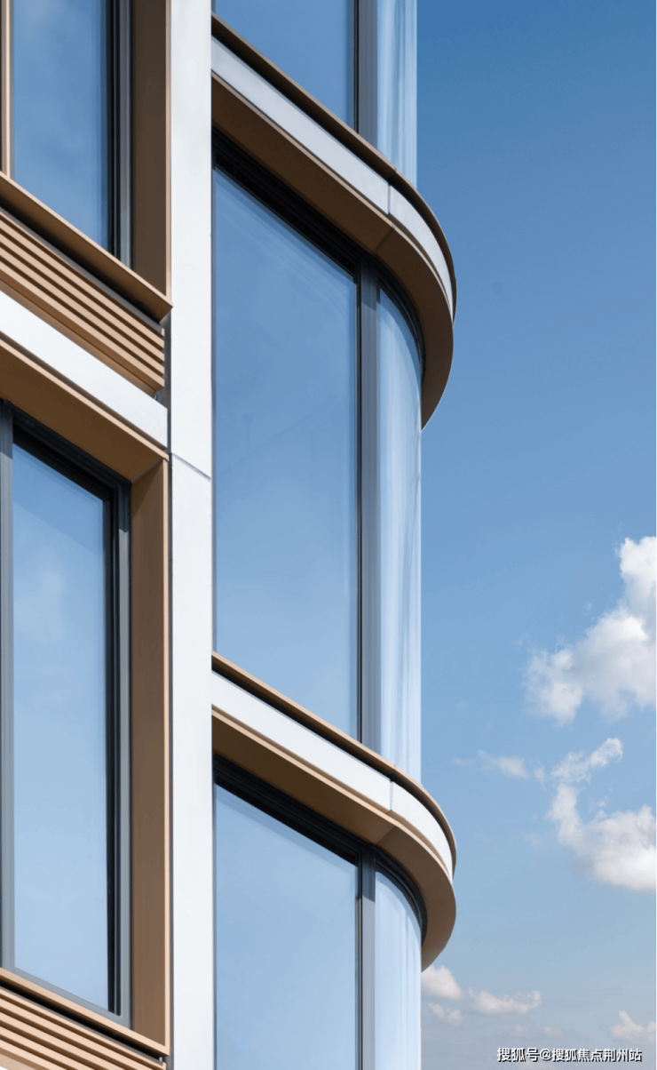 凤起潮鸣首创园区罕见的玻璃曲面全面屏设计,大规模应用曲面玻璃与曲面蜂窝铝板,以流线型设计消解建筑的厚重感,营造极高的窗墙比和270°无界环幕视野。这种工艺难度与成本,远超常规平面幕墙。