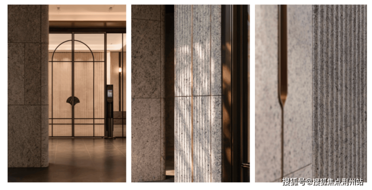材料方面更是采用成本高昂的印度白玫瑰石材与蜂窝铝板,并延伸至架空层内部,实现里外一体。