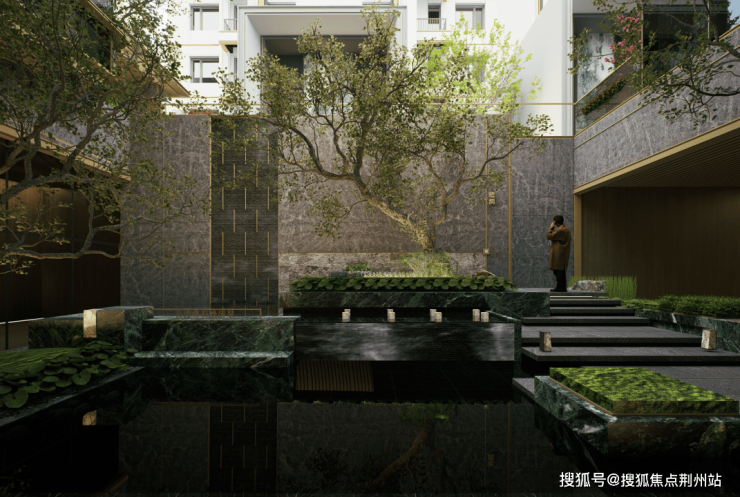 城市玄关启用尺寸恢弘的入口大门,定制特色艺术铺装、时尚奢华精工水景、精致素瓷屏风,都勾勒出温润雅致的东方意境。