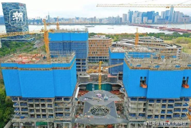 在望天际工地现场,可以看到已经有4幢拔地而起,其中2号楼和6号楼两幢进度稍快,目测已经接近10层左右。主入口也已经初具雏形,巨大的顶棚中央是凸起的弧形穹顶,尺度也非常大。