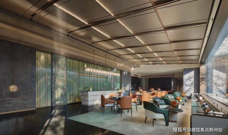 洽谈区大面积的绿色宛如一湖碧水,让人置身于湖泊的环绕中;而橘色的点缀则打破了宁静使空间充满了灵动与生命。渐变色的地毯,金属的屏风,皮革的质感,赋予了空间更加独特的肌理,体现出浓郁的东方韵味,尽享融古汇今的雅致。