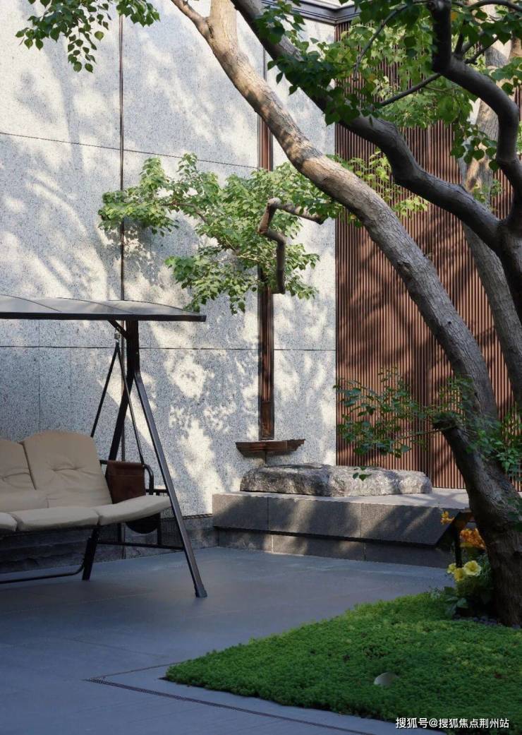 穿过清幽的走道,在自然的簇拥下移步换景,以一角窥入,赏湖光之色。溯游空间之中,似于湖心泛舟,取水之形,谱水之韵。温润自然的主调,在层层递进中,传递自然的力量。