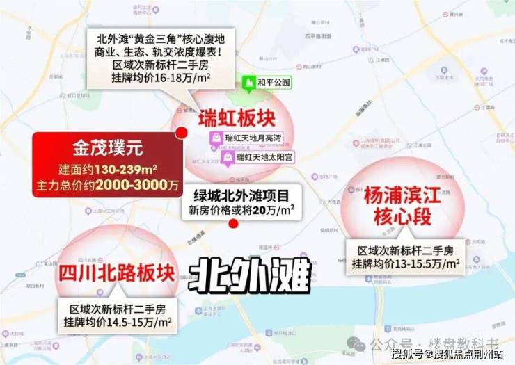 四川北路和杨浦滨江核心段目前次新标杆二手房挂牌均价约13-15.5万/㎡之间;