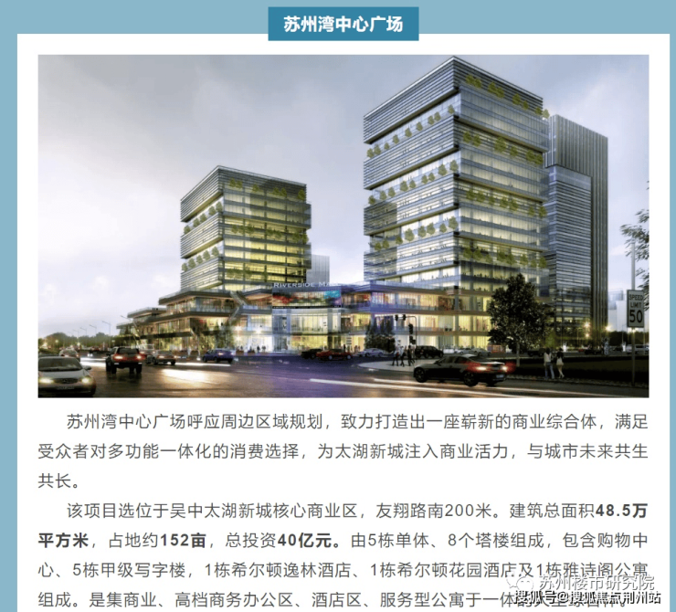 【资源】北侧100米地铁4号线(木里站)、约240000 ㎡公园、约20公里太湖沿线生态大堤,苏州湾中心广场、地下空间(橙天里)、吴中永旺梦乐城、歌林公园、悠方购物中心等配套一应俱全