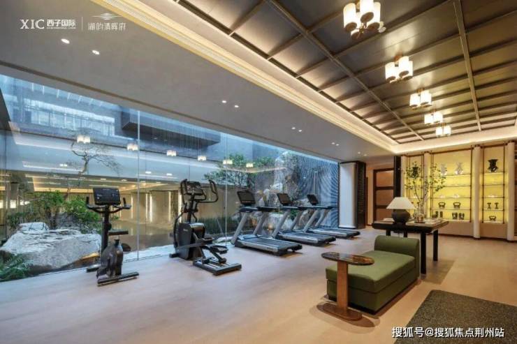 将视野转移到飞流直下的叠石飞瀑之下,便是那约1200㎡的下沉式会所,私宴厅、会客厅、健身房、瑜伽室、恒温泳池……各种功能空间都已经实景呈现,为钱塘塔尖,高定一座东方美学会所。