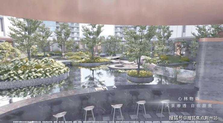 绿城·馥香园的山水庭院设计不仅注重视觉美感,更强调了人与自然的深度互动。设计师巧妙地在崖壁之上布置了两个别致的观景台,分别是横置于山石之上的“月岛”景观平台和傲立于崖壁之巅的“枕云洲”景观亭。通过这些精心设计的空间,未来业主们可以在不同的高度,尽情欣赏那片壮观的瀑布以及整座精致的下沉式庭院。与众多只能静观的下沉庭院不同,这里的每一处景色都充满了互动性,让每一位业主都能尽享山林之美,感受清风拂面、流水潺潺的宁静与变化。