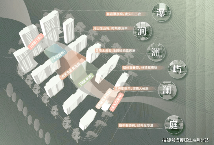 绿城·馥香园的游廊归境设计,从主入口的壮观水瀑开始,一路穿越下沉庭院的岩涧幽香,再到约580平的水景花园,这里的每一个角落都充满了故事。经过阳光草坪,我们抵达了中轴艺术花园,镜面般的水景映衬着两侧的浪漫樱花树阵,美不胜收。最后,我们来到次入口,一方枯山水庭院静静地躺在那里,虽无水却仿佛有水在流动,营造出一种深邃的意境。