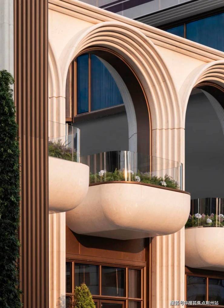 26个近十二米通高的拱券阵列于舒展的沿街界面中,宏大的尺度赋予庄重之感。斯卡帕式的叠退立面,于光影间演绎优雅美学,让回家成为一场风景漫步。