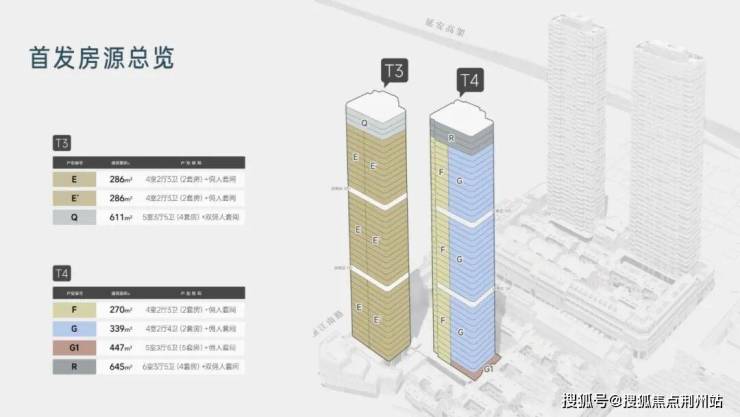 项目首开南地块T3、T4的2幢150米超高层地标大宅,首期主力户型为270㎡/288㎡/338㎡的以及少量608/640㎡的城市封面级天际大平层。