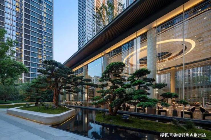 景观则为现代都市度假风格配套,园区绿意与建筑的完美配合,减弱超高层建筑的压迫感,增加园区使用的舒适度,达到居则悦的品质、归则隐的自然,给予客户极致的居住体验。