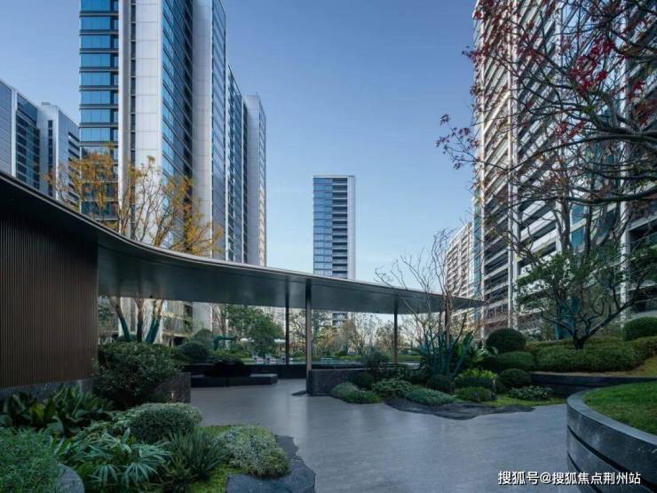 植物空间融入乌桕、娜塔莉、冬青、香樾,以纯林和混种搭配的多变手法交相变化。在一连串的园林设计中,可以看到项目绿植硬铺设计的既克制又和谐。无论是空中俯瞰还是360度的行走观感,都是不同角度的满分画面。