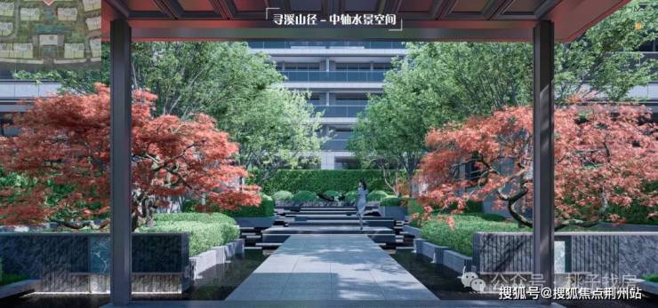 从水中庭院走出来之后,还可以沿着石板铺成的水中小径,拾级而上,仿佛漫步在溪流边,穿梭在一片春绿秋红中。