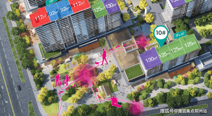 项目户型比较纯粹,18F的小高层均为2T4户,中间户是92㎡三房,边户是112㎡四房。7F和11F洋房均为1T2户,挂角的主要是130㎡四房,另外一个夹边户是125㎡四房。