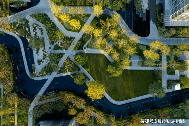 园林中三重景观与四季植被依自然留白的设计语言而设,数十载红花檵木老桩以揖礼之姿迎宾,威尼斯棕奢石景墙以收藏级工艺打造的流动形态呼应江水意境。