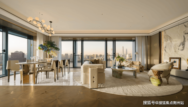 如果说240㎡「天幕臻境」是为女性审美量身定制的雅柔诗篇,以 “轻盈”和“悦己” 为理念,用柔和光泽晕染空间肌理,以温润触感包裹日常时光,将艺术级的雅致与柔美刻进每一处细节;那么 252㎡「江幕艺境」便是自然与空间的共鸣之作,以空中露台为媒介,让江风穿堂、霞光入户,将江景的壮阔与露台的静谧融为一体,勾勒出江与空间沉浸式互动的极致氛围感。