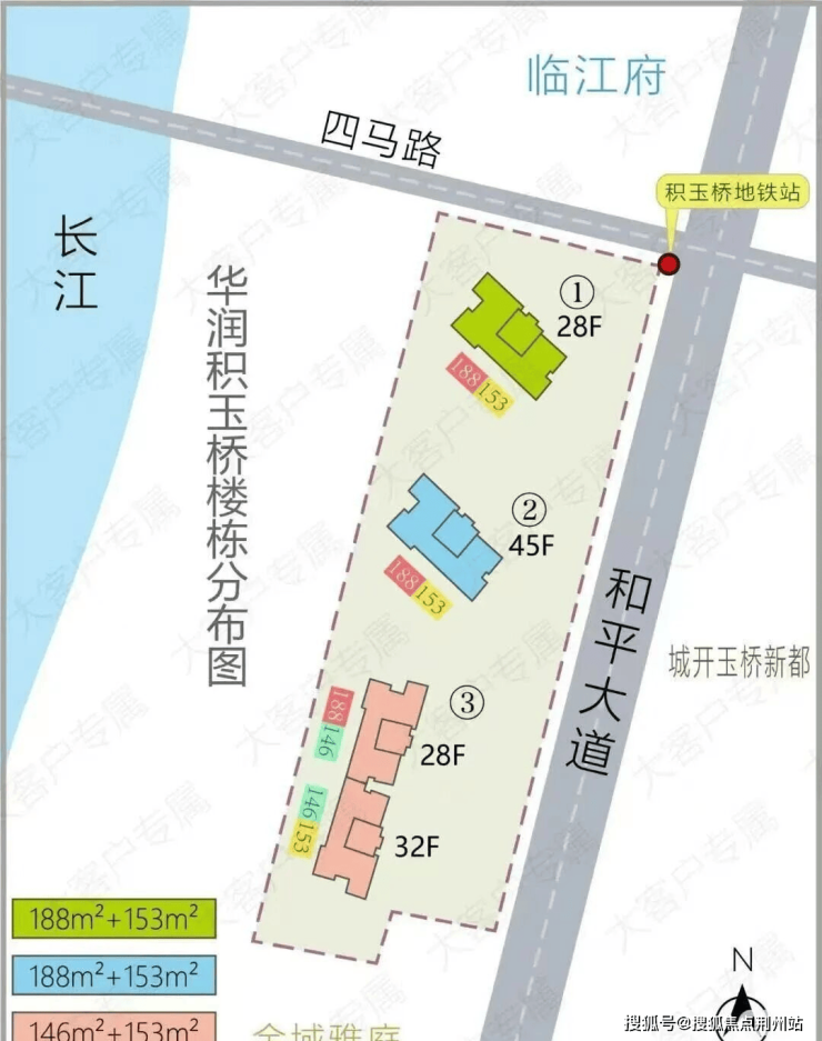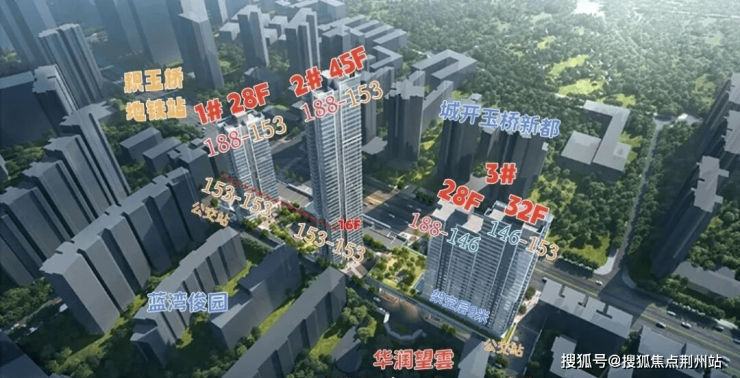 项目一共3栋楼,1号楼28F,2号楼45F,3号楼两个单元,一个28F,一个32F。项目户型为146/153/188㎡。