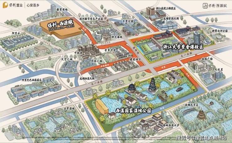保利·西源赋由央企保利置业100%全资独立开发,落子西湖区紫金港科技城核心。这里不仅是杭州传统的“老城西”文脉腹地,更是城西科创大走廊的东部核心起点。