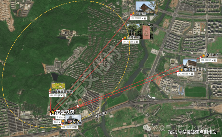直线约2公里则可达良渚文化村标志性商业地标——玉鸟集。