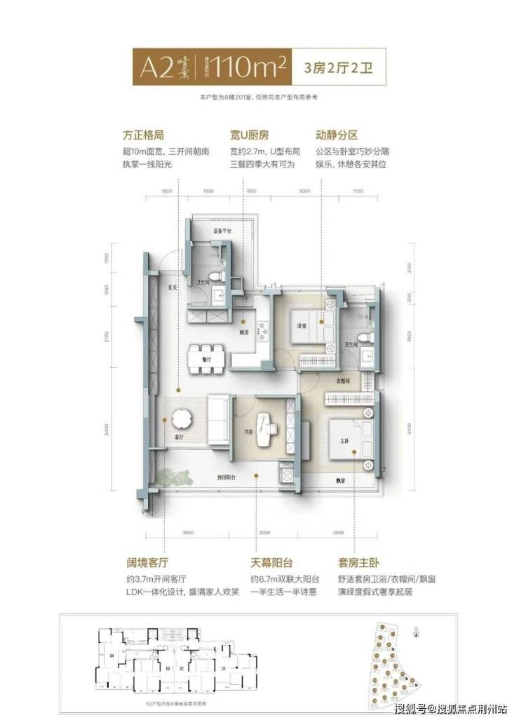 建面约105㎡晴光户型,不仅实现更优面积排布,更做到精神与审美的高度适配。在设计中,这间三房同样拥有南向大面宽,搭配S墙/开放式厨房/一体化餐客厅/多功能书房/酒店套房主卧等,将整个空间的开阔感和互动性做到极致,满足居住者对舒适、安逸的“精准需求”。
