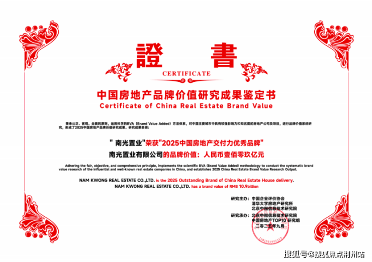 南光置业荣获“2025中国房地产交付力优秀品牌”
