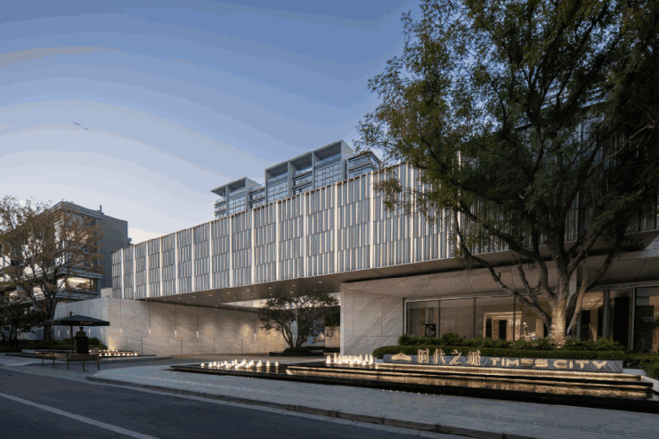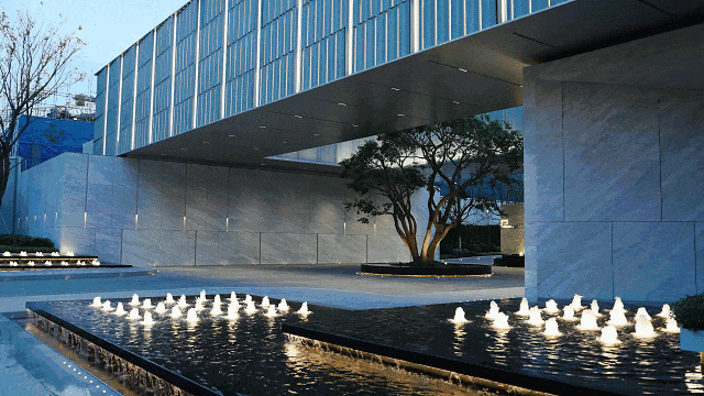 项目入口处,珍贵玉石打造的门头,挺拔的迎客松,彰显归家仪式感;
