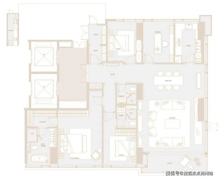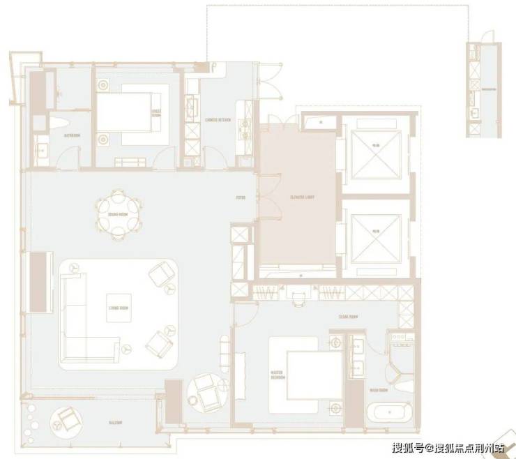 其中嘉佰轩建筑布局致力于江景资源最大化,采用约135°转角楼型,提升观景面,每户设有IMAX观景阳台,长江七桥尽收眼底;采用三梯两户设计,实现独立电梯入户。