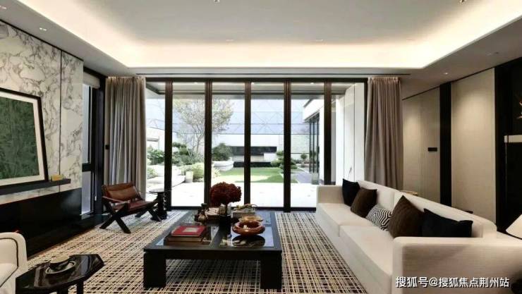 为了打破隔阂,绿城在设计上采用大面积玻璃做“桥梁”:客厅配置多面落地窗,推开门就能直接步入庭院,没有多余动线;