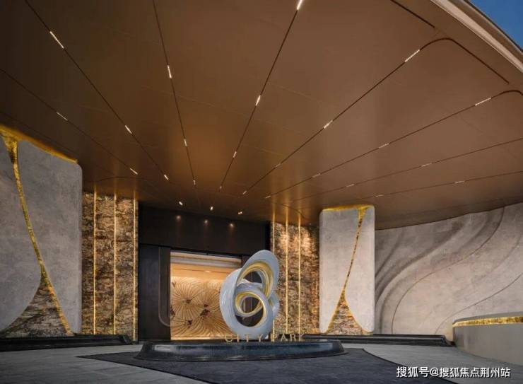 走过凌云桥,眼前便是挑高达9米、宽36米的鎏金门庭。雅柏白与香格里拉奢石镶嵌的背景墙,配合旅德艺术家LilyZhang定制的“无限云环”雕塑,气场全开。门庭两侧背景墙,选用巴西进口的整块白水晶奢石,天然石材的肌理在灯光下流转,温润如玉。当那扇手工锻打的鎏金铜门缓缓打开,对于别人是盛大的仪式,对于业主,只是日常 。