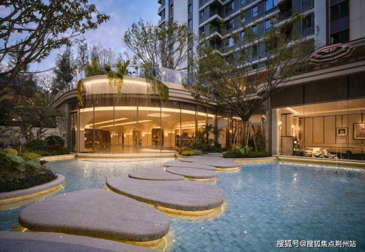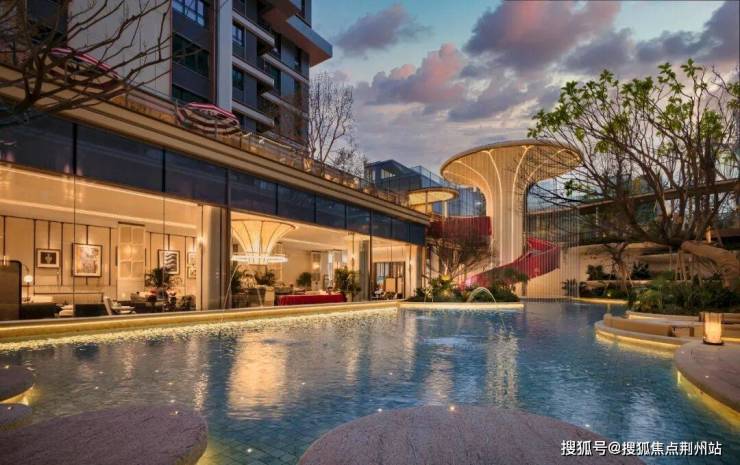 10米环抱式水幕环绕着一座酒红色的艺术旋梯潺潺流下,6米高的高空瀑布从会所泳池上方飞泻,最终汇入脚下1200㎡的镜面水景。这是2026年上海首个拥有水幕瀑布系统的社区,将新加坡皮克林酒店的同款度假感搬到了家楼下 。