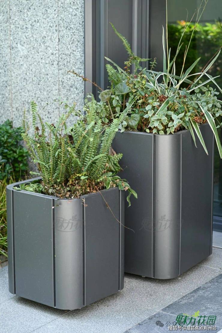 简约时尚的花箱结伴在小区各处,悄然绽放着勃勃生机