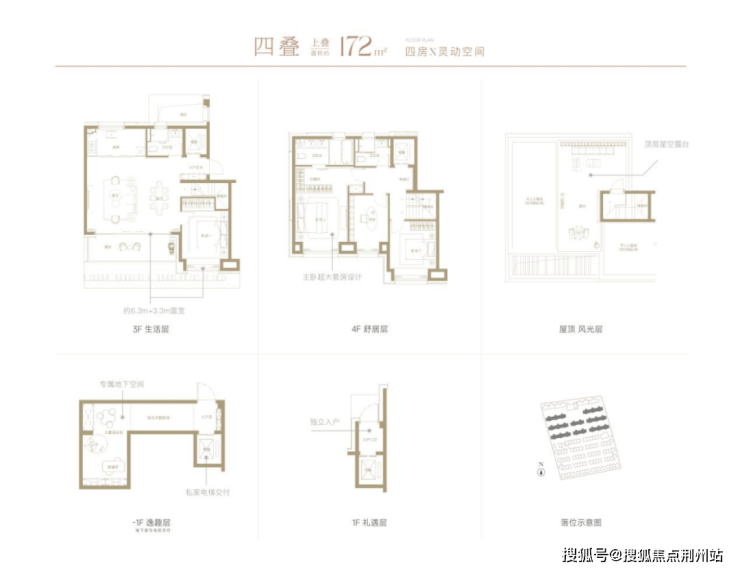 2026“高低配”新盘供应时代,尚园是市面上罕有“全四叠墅”。三批次加推179㎡明星下叠,约9.6米宽厅美墅,享有大尺度花园、露台、地下室。户内私家电梯、独门独院、四卧全朝南。首层设老人房,约6.3米LDK大横厅+首层大落地窗,与前庭花园边界消融。二层约9.6米南向大三开间面宽,横向衔接主人套房+独立书房+超大观景露台。