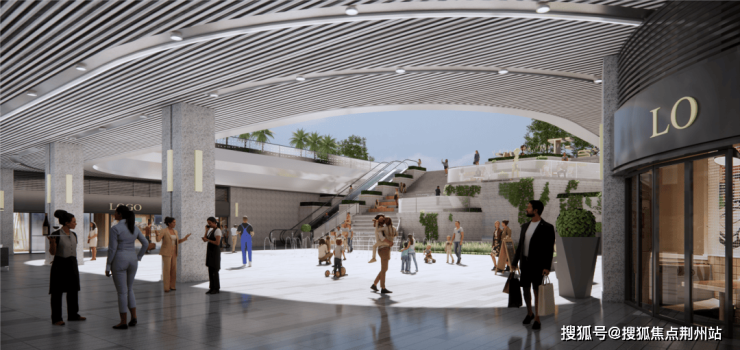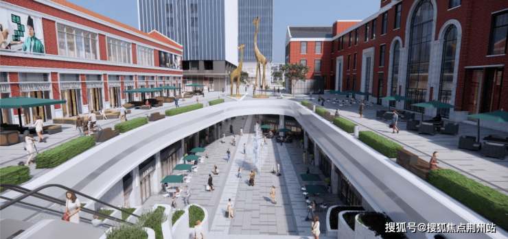2.商业界面面向广场广角展开,入口商业广场空间感更大。