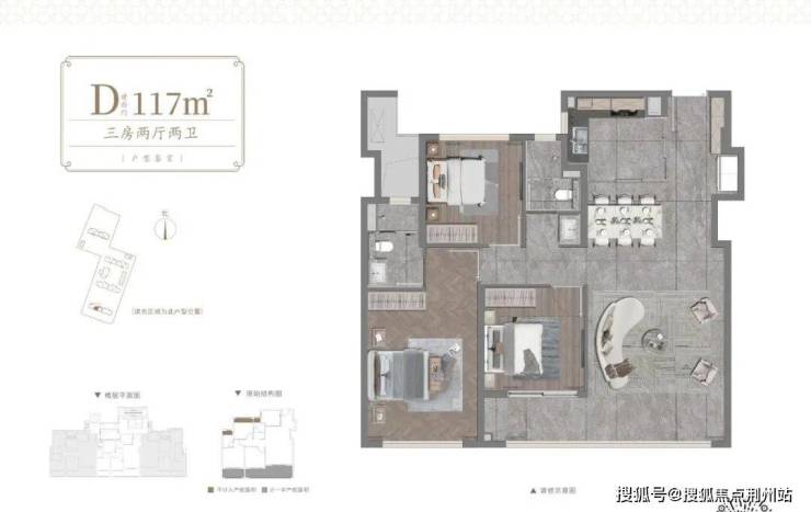 产品类型:6栋住宅,涵盖小高层(12-16层)和高层(32层),共394户,主力户型为117-185㎡。