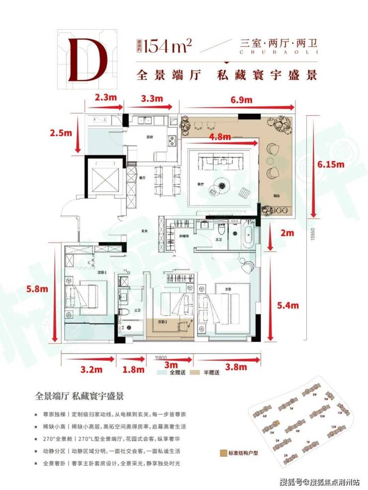 楚宝里共计106-107、124-127、144-147、154、165㎡五个户型,得房率90%起,五个户型做得都不错。