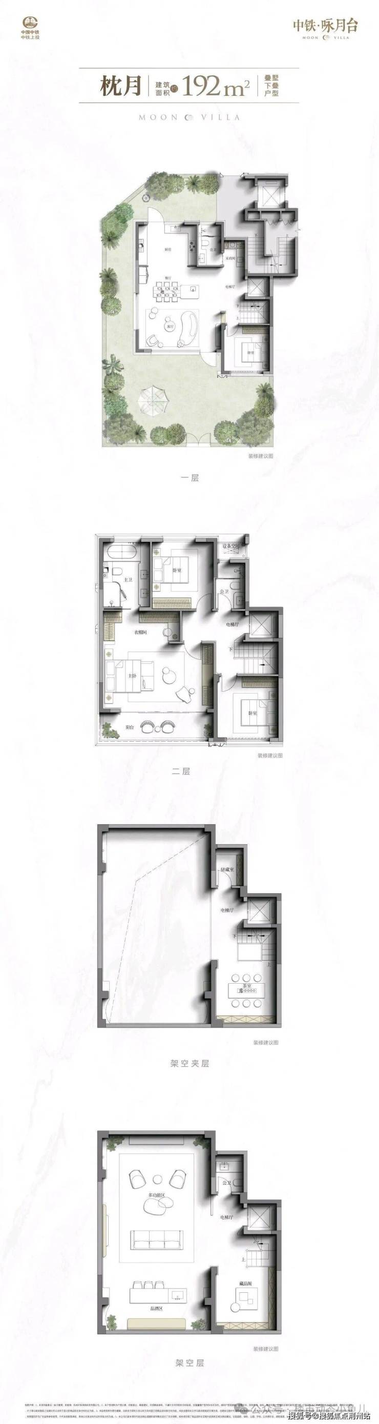 下叠(约192㎡):拥有约9.4米南向面宽和私属独立庭院,将墅居的仪式感拉满。