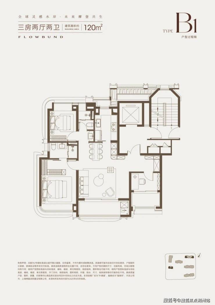 建面约120㎡的大横厅、双阳台产品,并没有勉强去做4房,而是打造了一个超宽绰的3房产品。